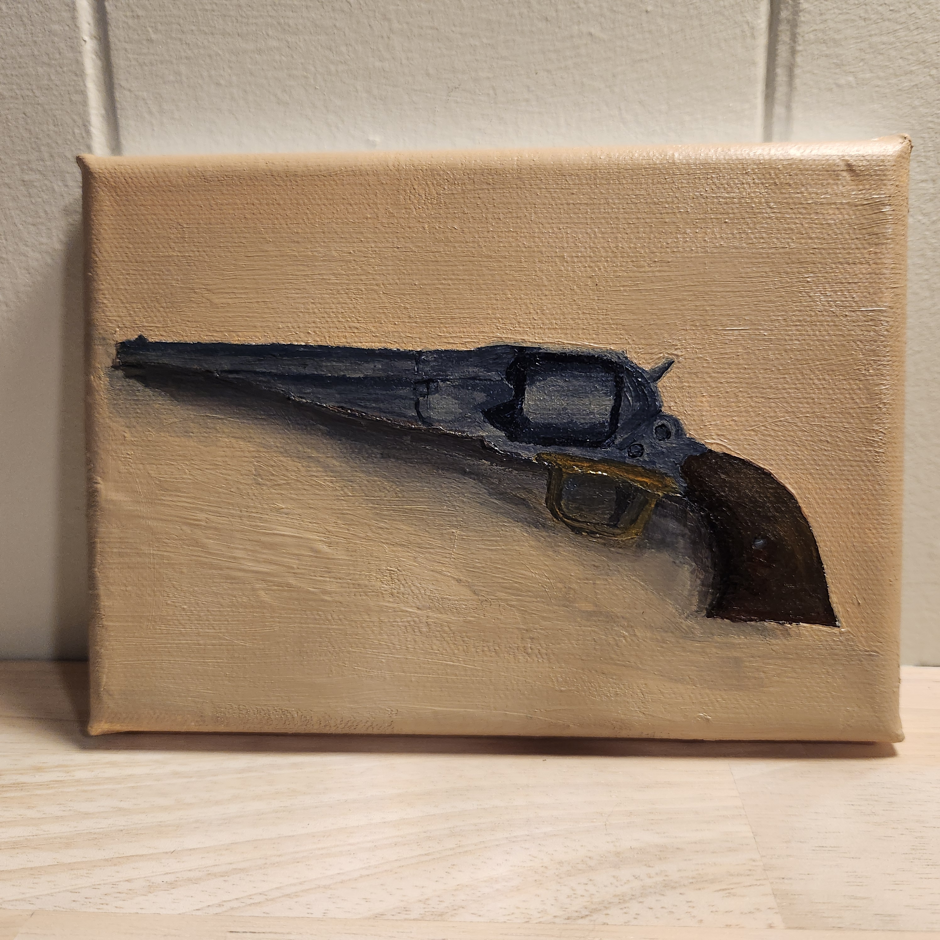 Happiness is an Old Gun, acrylic on canvas, 5″ x 7″